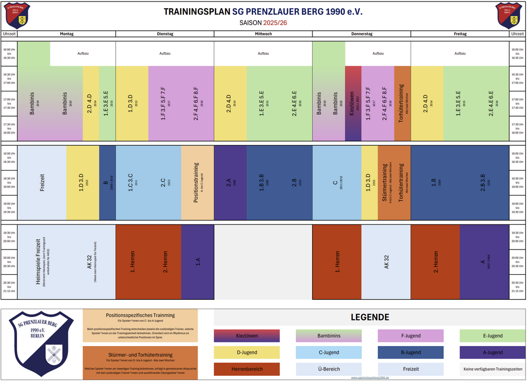 Unsere Sportanlage in der Hanns-Eisler-Straße ist endlich fertig saniert – und wir können zurück nach Hause! Ab sofort finden alle Trainingseinheiten wieder auf unserer eigenen Anlage statt. Damit gilt nun auch der reguläre Trainingsplan für die Saison 2025/26.